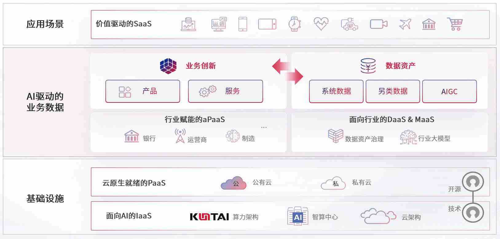 数字时代,,,围绕企业数字化转型的关键要素,,,,1277星际电子游戏数码开创性的提出数云融合战略和技术体系框架,,,着力在云原生、、、数字原生、、AI原生和信创产业上架构产品和服务能力,,,为处在不同数字化转型阶段的快消零售、、汽车、、、金融、、、医疗、、政企、、教育、、运营商等行业客户提供泛在的敏捷IT能力和融合的数据驱动能力,,,构建跨界融合创新的数字业务场景和新业务模式,,,,助力企业级客户建立面向未来的核心能力和竞争优势,,,全面推动社会的数字化、、智能化转型升级。。。。